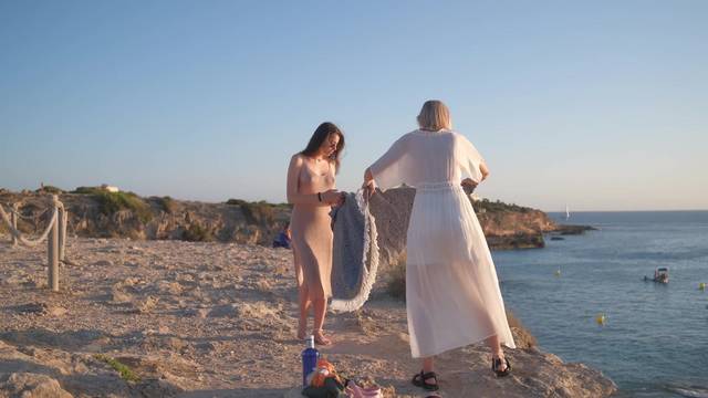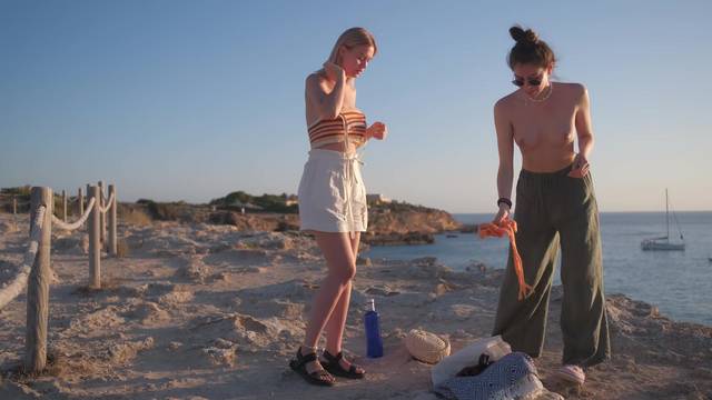 Um verdadeiro piquenique na praia com duas garotas nuas, Alissa e Lana