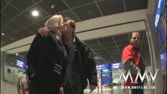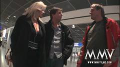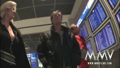 Uma alemã com dois amigos querem transar no aeroporto! Eles começam no elevador e acabam em um quarto de hotel!