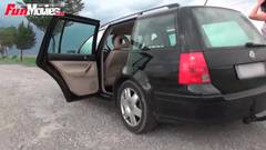 Aqui está uma cena amadora de um casal em um carro. Durante o passeio a morena vai chupar o pau de seu marido e engolir seu esperma!