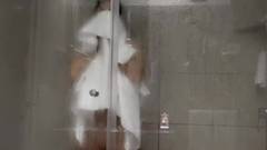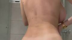 Enquanto nos mostra sua rotina de banho, ela tira a roupa e nos deixa ver seus peitos enormes. Sua bunda também é enorme, então ela é uma verdadeira amadora!