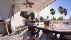 Duas morenas e dois homens fazem sexo a quatro em pornô VR