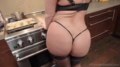 London River notou que seu enteado estava olhando para seus peitos gordos e naturais e, como não há mais ninguém na casa, decide fazer um boquete nele.
