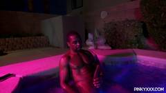 Alycia Starr faz sexo oral em um BBC na piscina. Ela o leva para dentro da piscina para ser penetrado no estilo cachorrinho e vaqueira, e masturba sua bunda.