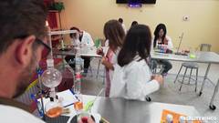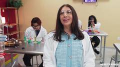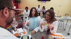 Selina é safada com o professor! Ela chupa o pau dele quando a nova aluna Brenna vem se apresentar, mas logo se transforma em um ménage à trois.
