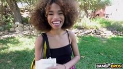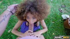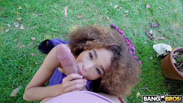 Cecilia Lion fica surpresa quando esse homem branco tira seu pênis gordo para fora. Ela esperava que ele fosse pequeno, mas quando o vê, imediatamente chupa