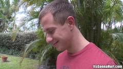 Quando ele sai para o jardim da casa, encontra seu vizinho negro com um pau muito duro e quer fazer sexo gay com ele ao ar livre até gozar na sua boca.