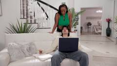 Black Lily Starfire fica entediada e encontra seu meio-irmão no andar de baixo. Ela o excita com seus peitos gordos e ele imediatamente os chupa