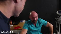 O Dr. Killian Knox seduz seu paciente Archie Paige e começa a chupar seu pau! Depois, Killian se deita e Archie começa a montá-lo.