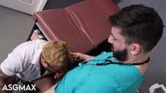 Scott DeMarco é um homem musculoso e tatuado que Riley Mitchel quer foder no estilo cachorrinho depois de chupar seu pau no consultório médico.