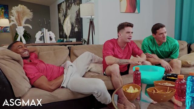 Durante o jogo, este tipo está com a mente ocupada e assim seus amigos gays podem se excitar com o corpo dele. Entre mamadas de picas e cuzos, eles se divertem bem.