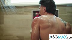 Depois de um pouco de partilha e ternura debaixo do chuveiro, lambidas de rabos apertados e felações, passam ao sofá para começar a chupar!
