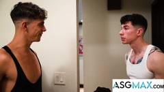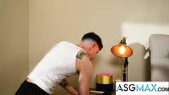 Esse jovem moreno tatuado quer sentir seu pau sendo chupado por seu amigo, então ele se inclina sobre seu corpo e começa a fodê-lo com força.