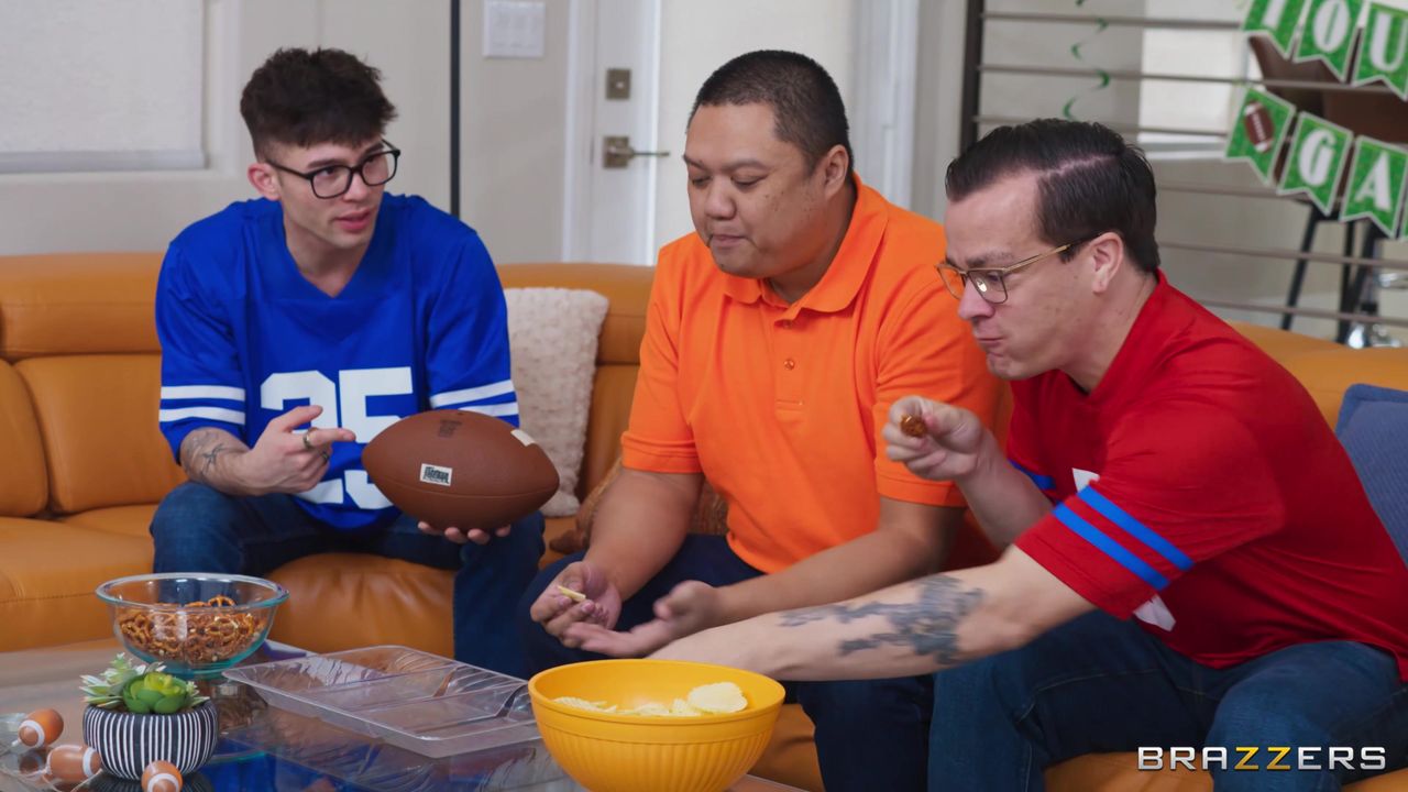 Durante a grande partida, Desiree Dulce, Destiny Mira e September Reign saem de fininho para usar um strap-on e foder as bucetas umas das outras.