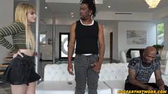 A loira Evie Christian fica no meio desses dois negros enormes e está prestes a ser banhada em esperma! Um pau em sua boca e outro em sua buceta!