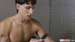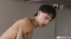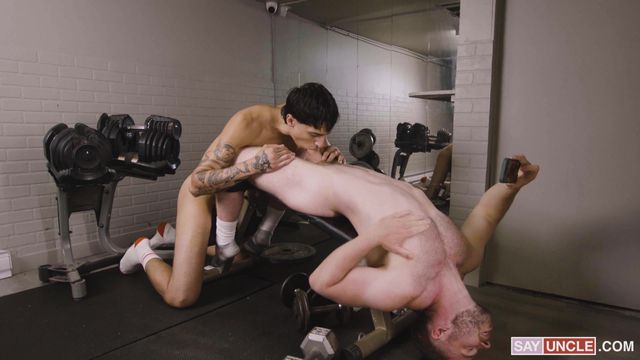 Esses dois gays estão sozinhos na academia, exibindo seus músculos e malhando nus. Rapidamente, eles ficam excitados chupando pau e lambendo o cu.