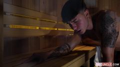 Latinos gays se divertindo chupando os pênis uns dos outros na sauna