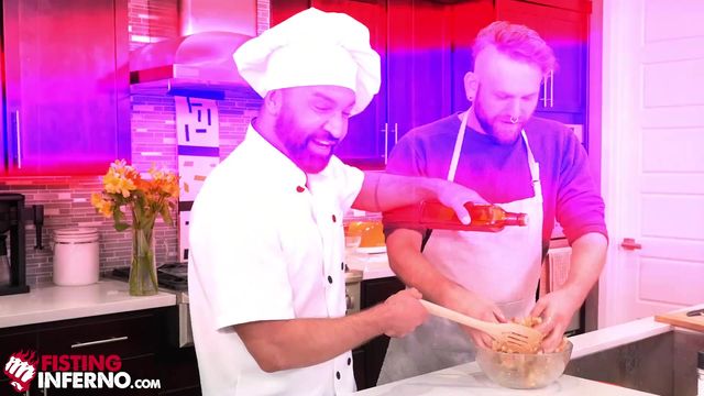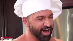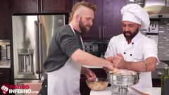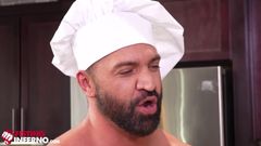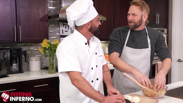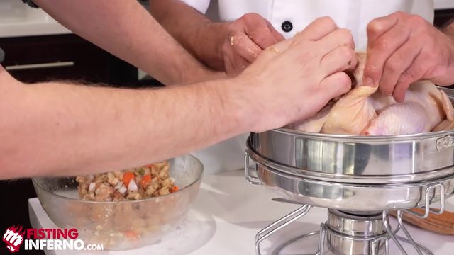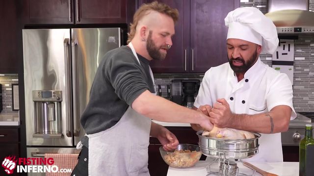 Depois de rechear um peru e cozinhar um pouco, Josh Mikael se lembra de ter seu pênis recheado e pede ao chef Dominic Pacifico que o foda cru.