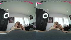 Para que Summer Rayne fique muito mais excitada, basta sentar-se na pila desse cara que a grava em VR e ver como a pija flácida dele se move nela.