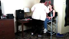 Uma mulher trans magra e morena visita um homem maduro. O homem careca sabe como despertar o desejo dela e a fode com força!