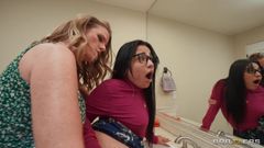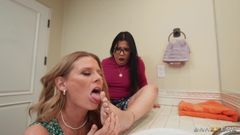 A MILF Reya Lovenlight chupa os pés da sua companheira de casa Summer Col! Mas o namorado dela Juan Lucho está excitado e quer foder as duas!