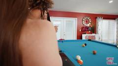 Ela vai jogar bilhar com os amigos, mas acaba se masturbando sozinha.