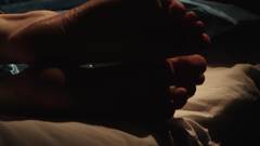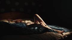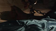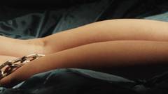 Milf ruiva sensual sozinha na cama em um pornô BDSM acorrentado