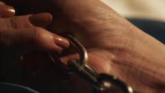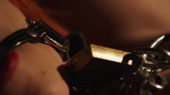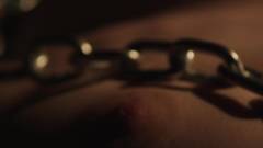 A sensual ruiva milf é mostrada nua e sozinha na cama, brincando com correntes em uma cena quente de BDSM que nós vamos adorar.