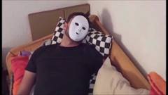 Um cara mascarado fode um cara e o faz explodir seu pau grande até ejacular em sua boca e o faz engolir seu esperma quente e pegajoso.