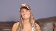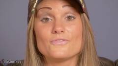 Ashli, uma loira peituda, fica nua em um casting quente. Ela mostra seus peitos grandes e é fodida com força, gemendo sem parar em uma cena amadora.
