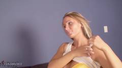A loira peituda Ashli fica nua e é fodida nesse delicioso casting