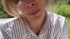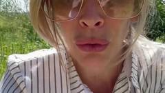 Essa MILF loira chupa pau e fode com força ao ar livre, com sua buceta peluda se exibindo na natureza. Pura paixão quando se trata de sexo oral.