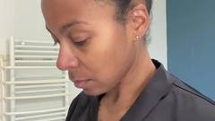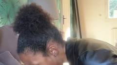 Prisca é uma linda garota negra peituda de meias fazendo sexo oral em POV