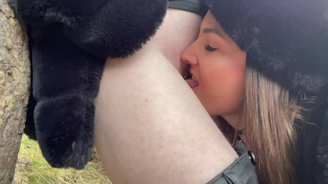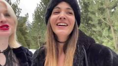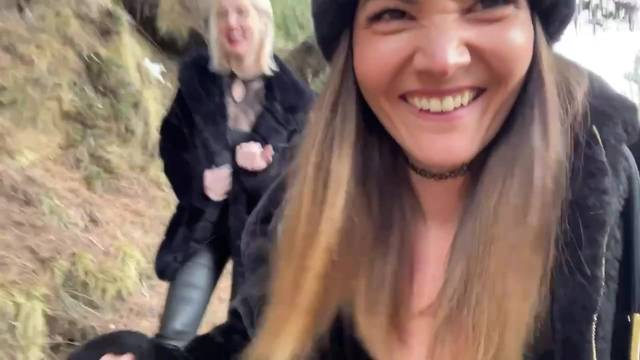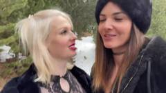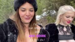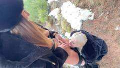 Jade e sua amiga em um trio chupando pau ao ar livre sem parar
