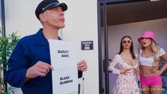 Mick Blue, se passando por um motorista de limusine, pega as excitadas Blake Blossom e Hailey Rose, com seus peitos grandes e suas bucetas prontas para foder.