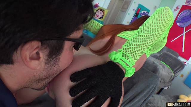 Stella Luxx é essa ruiva de bunda grande que é lubrificada e recebe sexo anal intenso. Ela geme enquanto é fodida com força em POV, sua bunda enorme balançando sem parar.