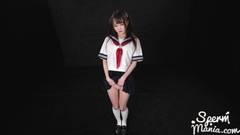 Ria Kurumi é uma linda morena asiática em um traje de marinheiro e meias, que se masturba sozinha em POV. Sua buceta peluda brilha enquanto ela se toca com luxúria.