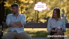 A linda loira Eveline Dellai tem um encontro no parque que termina em uma foda gostosa. Essa jovem puta de buceta raspada adora ser espancada.