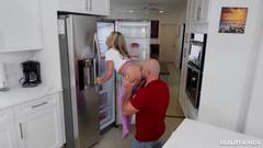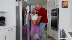 Jmac vê a bunda perfeita da MILF Summer Vixen aparecendo em leggings apertadas! Ele a devasta e chupa sua buceta. Ela se ajoelha e chupa o pau dele.
