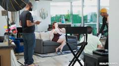Abigaiil Morris e Babe Gemini ficam nuas, chupam as tetas e lambem a buceta. Mick Blue entra sorrateiramente para uma foda, o que leva a uma foda cheia de tesão nos bastidores.