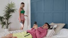 Angelique Rose chupa o pau grosso de Jordi enquanto tira fotos