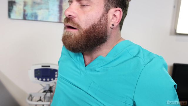Archie Paige veio conhecer seu médico favorito, Riley Mitchel! Riley examina seu cuzinho e o faz chupar seu pau antes de fodê-lo com força!