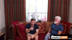 O velho Jake Marshall, de cabelos brancos, recebeu uma ligação de seu sobrinho Scott Riley. Ele também é gay e quer que eu lhe dê uma surra de pênis.