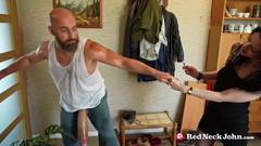 O caipira faz garganta profunda em uma mulher com seu pênis gigante
