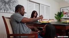 Melztube rouba Damion Dayski de seu colega de trabalho, chupa seu grande pau preto debaixo da mesa na cozinha e o fode com os peitos