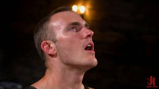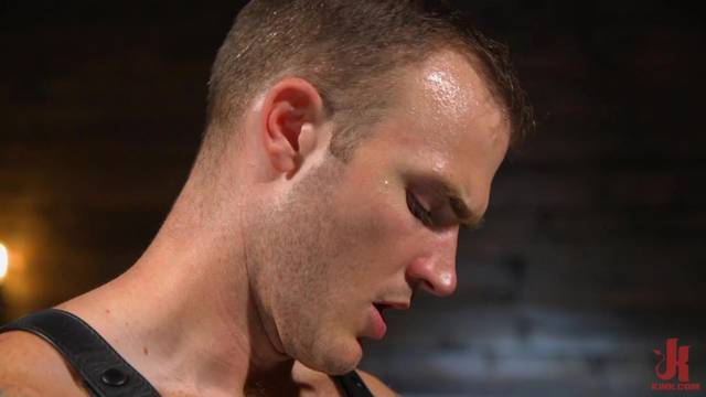 O submisso Seth Santoro é amarrado em um palco de BDSM! Christian Wilde o vira de costas e o fode analmente sem camisinha para que ele sinta mais.