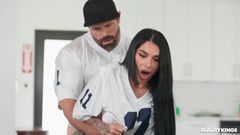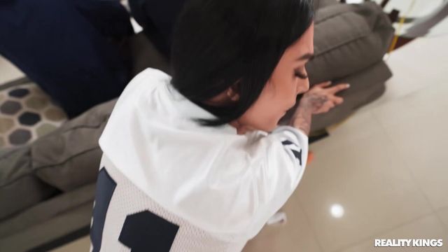 Egypt provoca o GI Joey com seus grandes peitos e uma foda entre peitos. Ela o chupa na cozinha e a fodem às costas do seu homem enquanto assistem ao futebol.