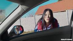 Para conseguir uma carona, Mion Hazuki exibe seus peitos grandes no carro de Jordi Polla, chupando o pau dele a caminho de casa para que eles possam transar.