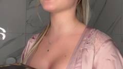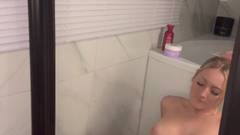A loira tem certeza de que vamos gostar de ver seu corpo nu enquanto ela toma banho e se masturba com um vibrador e suas mãos. Eu a recomendo para você!
