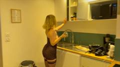 Dá para perceber que essa loira está curiosa para ver o pau desse homem e espera excitá-lo mostrando seus peitos enormes. Ele a fode e acaba gozando.