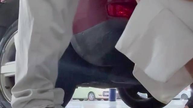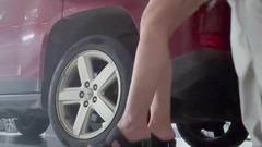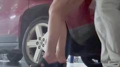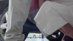 Esse momento de masturbação no carro deixará esse cara feliz, então ele a filma usando o diodo e depois faz um bom boquete na garagem.